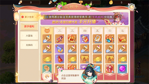 7、点击福利中心,这里可以领取豪华奖励;