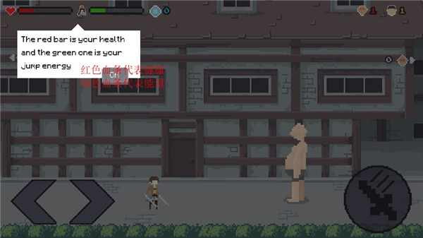 8、左边的按钮可以控制角色左右移动,右边的按钮可以控制角色进行攻击;