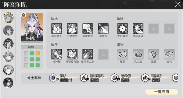 3、姬皓月+姬紫月+伊轻舞+项一飞+李东来+阴阳。