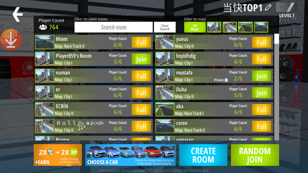 5、这里我随便进入一个房间,这是老外开的竞速房间,可以自由竞速!甚至连栏杆都能开上去,非常自由!