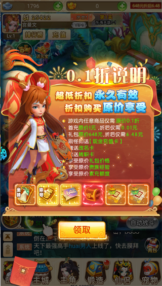 进入游戏后,优先领取0.1折福利和648元充值卡,首充1元即可解锁大量资源,快速提升初始战力。