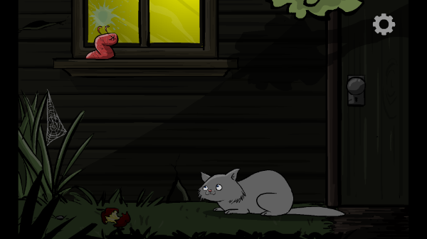 2、第二关:点门把,猫来,点蛛网,点烂苹果,虫吐浆,猫走,点猫,猫又来,点门上树影,进洞,狂点4个钮,出来,点猫,猫死,点门把,过。