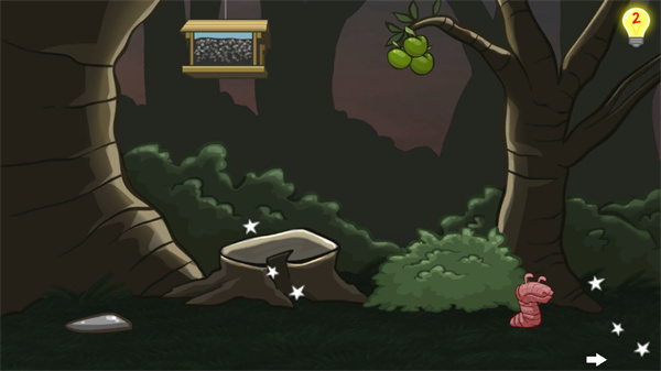 1、第一关:先点树枝,树枝掉下来,爬上去;点青蛙,青蛙死,鸟飞,点鸟原来站的那木头,木头倒,点鱼竿,杆架过来,点水里石头,鱼来,点虫,虫爬杆,点竿几下,过。