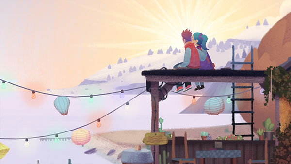 3、移动到椅子前:直接点击远方的房子,老人会自动寻路,跳过各个山谷,走到房子前的椅子上坐下。点击房檐上的情侣,情侣会做一些互动,然后老人就开始回忆……回忆结束以后即可进入下一关。