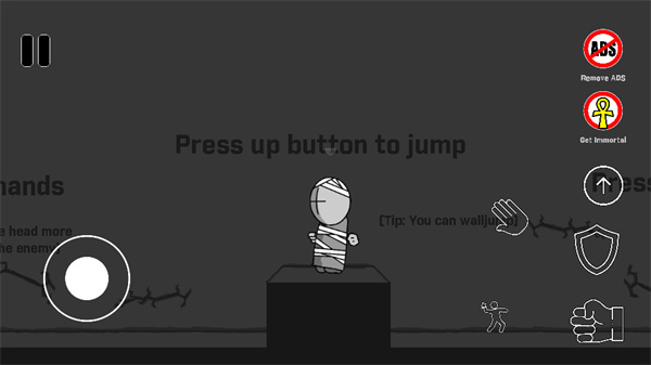 3、右手的手掌图标可以控制人物拾取道具,小人图标可以控制角色投掷武器,面对一些远程敌人时会需要使用这个技巧。