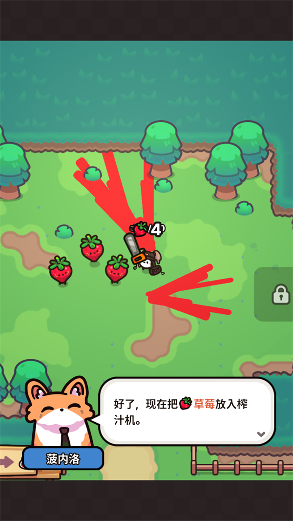 2、 智能榨汁:将收割的水果投入机器,自动制作成美味果汁或冰沙,不同配方带来不同收益。