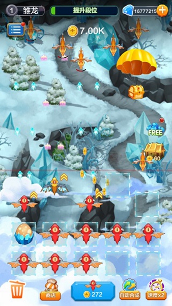 2、采用放置合成玩法,操作简单便捷,一键合成你想要的各类巨龙。