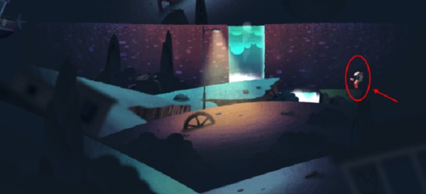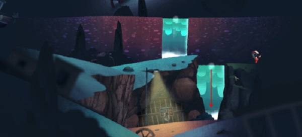 新的场景中我们可以看到瀑布(海底也有瀑布),从这里跳下去。