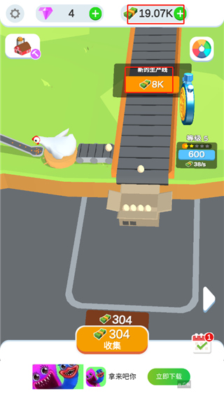 3、获得一只母鸡,这样就相当于获得一条生产线,母鸡产生的鸡蛋将会直接成为玩家的收益;