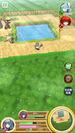 如上图所示,绕着一个池子攻击怪物,能非常清晰地看到敌我的位置,便于决定在什么地方停下来打,以及靠近到什么距离后开始躲避,此外,这种转角处为直角的障碍物(池子),用来躲避敌人的攻击也很方便。
