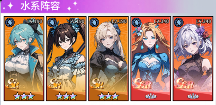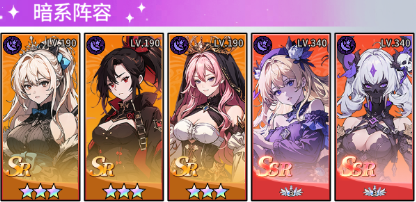 英雄:芙蕾雅+夜莺之瞳+神幸乃+SSR夜神凌+SSR毒姬。