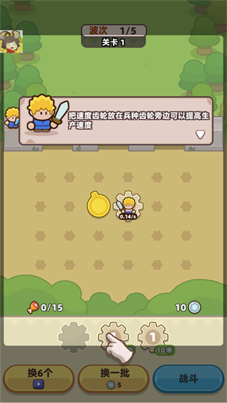 2、在关卡中收集速度齿轮,提升战士的攻击力与特殊技能效果。