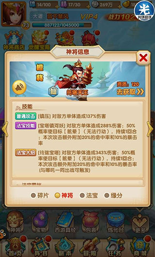 点评:最肉的一堆武将堆在一起会发生什么呢?搭配托塔天王的单秒,红孩儿的燃烧补刀,无论是叛军还是副本都是很给力的!高投入,氪金。
