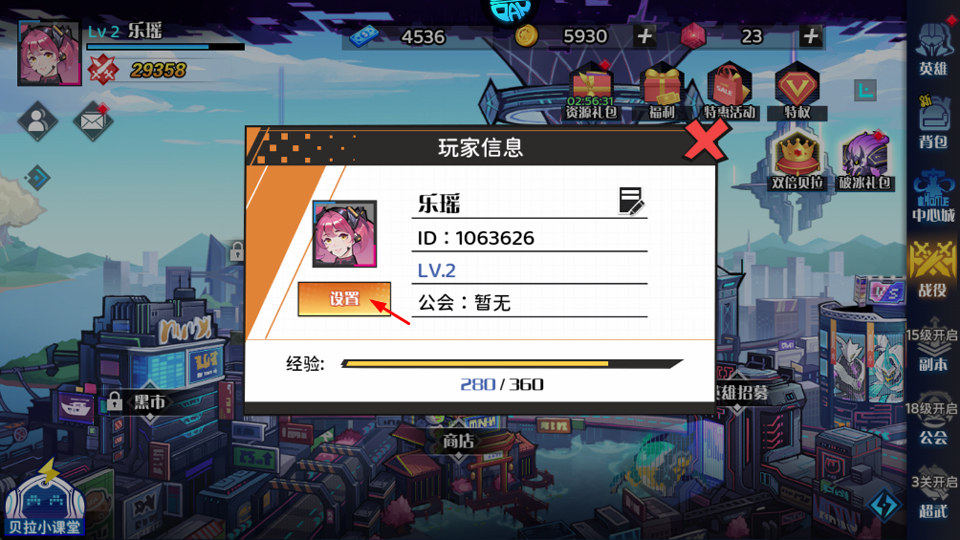 1、打开冒险传奇手游,点击界面左上角的头像图标。