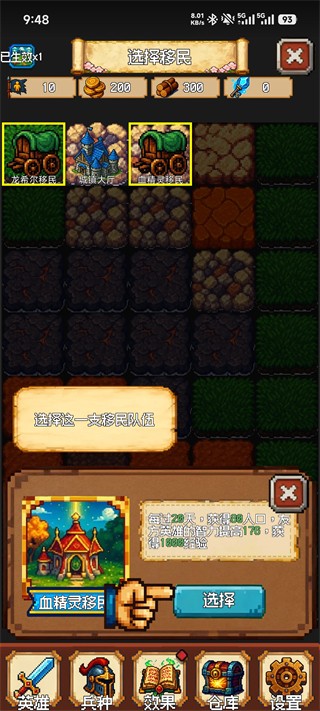 选择“血精灵移民”可带来持续收益:每20天获得80人口、英雄智力+178 与1000经验,能明显提升中后期英雄成长速度。