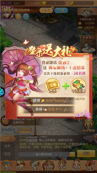 3、角色与武将支持养成升级玩法,升级后能提升基础属性,增强实战能力,可解锁全新技能与招式,进一步提升角色强度。