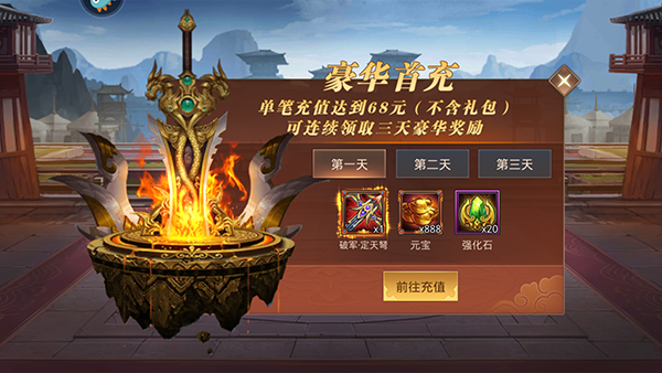 4、豪华首充,可以享受到三天的豪华奖励。