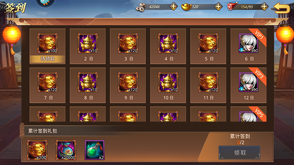 3、每日签到,每日签到豪礼领不完,累计签到还额外赠送礼包。