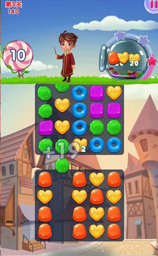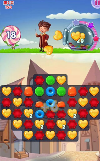 1、三个颜色相同的糖果连在一起就可以收集,这就是魔法的力量,每个关卡都有收集的目标,完成目标就可通关下一个关卡,