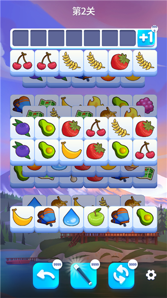 1.只需轻点屏幕,就能将方块堆积起来,集齐三个相同方块即可完成配对消除。