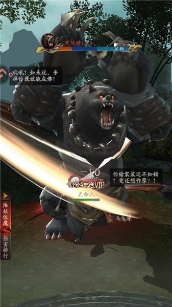 2、【策略战斗・唯我号令】突破传统战斗模式,创新召唤玩法随心搭配。黑熊精、蜘蛛精乃至传说神将皆可收入麾下,听你调遣。闪避、格挡、连招等指尖微操,尽显神通实力。