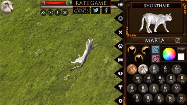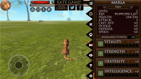 通过捕获、吞食猎物,照顾家人、完成任务来获取经验值。提升小猫等级可增加生命值与攻击力,赚取属性点数来强化各项能力,扩大队伍容量。