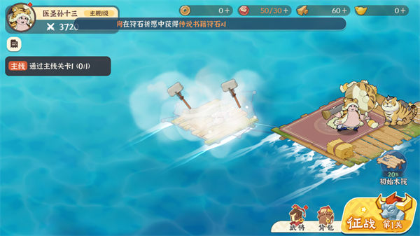 养成玩法主要分为战船养成与武将养成两大板块。结合游戏“海上漂流”的背景设定,战船相当于玩家的主城,将从初始的小小木筏起步,通过收集各类材料逐步升级,最终将木筏打造成规模宏大、战力强劲的战舰。