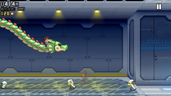4、 无尽逃亡:为了生存并获取证据,巴里必须利用喷气背包在长长的实验通道中不断奔跑,距离越远挑战越大。