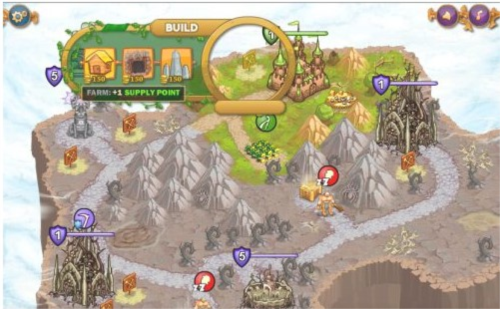 3、拾取宝箱后迅速在城堡空地建造两个农场,同时训练两支骑兵部队,训练结束后,命令所有四支部队攻击敌军魔法塔;