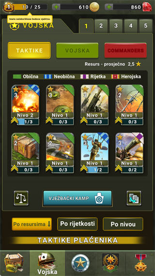 每套牌中玩家最多可以拥有8个战术和4个部队。要装备一张卡牌,你必须从“陆军”选项卡中的“可用战术”或“预备部队”部分中选择它,然后按“使用”并选择一张你想要替换的卡牌,或者如果你碰巧有的话,选择你牌组中的空白区域一。要了解每个级别的最佳卡组是什么,请单击此处。
