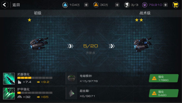想让战舰变强有两个途径,第一个就是强化战舰,强化后的战舰不仅属性可以得到提升,还能改变造型更加炫酷。