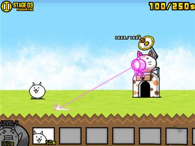2、点击开始战斗,任务是保护家乡,在游戏的早期阶段,很少有喵星人可以选择,如果敌人直接压在我们的塔下,塔的生命就会减少,到零的时候会GAMEOVER。