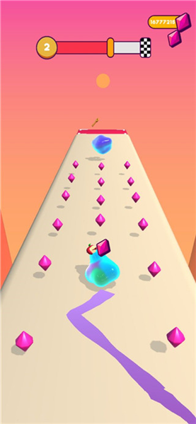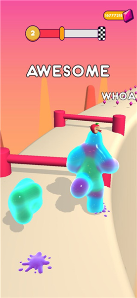 1、核心操作:控制果冻人开启冒险之旅,收集路途中的各类果冻,让果冻人不断增大;需躲避关卡中的各种危险(如栏杆、刀片等),一旦被刀片碰到,果冻人会散架并变得很小,到达终点时,果冻人越大,最终得分越高。