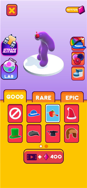 3、关键规则:碰到致命障碍物会导致游戏重启;收集足够多的果冻使果冻人变大,可获得终点意外奖励;遇到非致命障碍物后,可通过吃果冻恢复身体,自由装扮果冻人的帽子和皮肤。