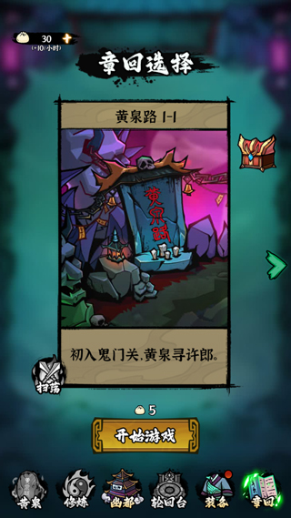 1、打开地府传说最新版,过完新手教程后,点击右下角章回;