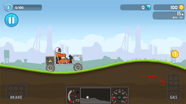2、点击右侧的gas按钮驾驶让赛车加速行驶,brake按键则为倒车;