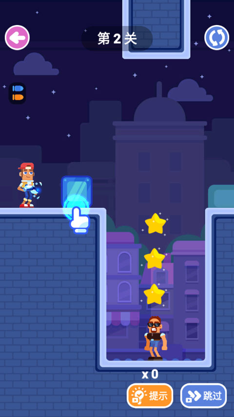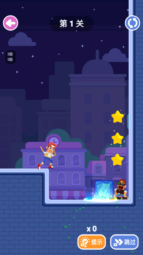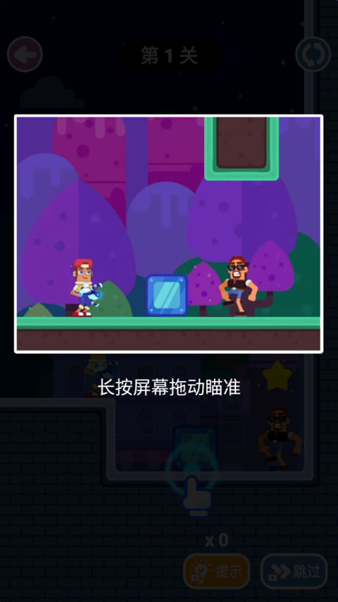 2、 轨迹预判操作:长按屏幕拖动瞄准,松开手指发射子弹,需精确计算抛物线与反弹角度以命中特定墙面。