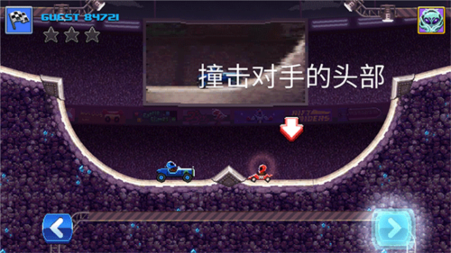 2、玩法非常简单,玩家将控制自己的赛车与对手比拼,撞击对手的头部;