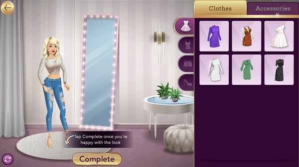 4、外形打造完成后,就可以进入服装搭配环节,游戏提供丰富的服饰选择,在“Clothes”界面挑选时尚衣物,或在“Accessories”页面搭配个性配饰,灵活运用穿搭技巧,让角色成为万众瞩目的焦点。