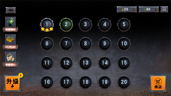 根据自身实力选择关卡,每一关都将带来全新的战场环境与敌人配置。