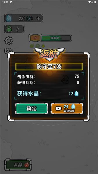 5、游戏采用自动攻击,在消灭一波敌人后可选择返航;