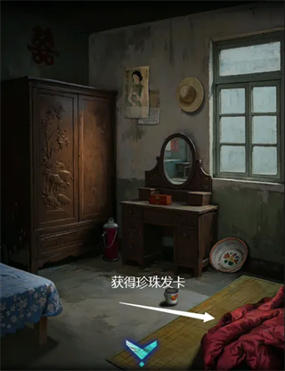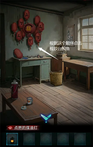 4、将鱼耳饰放在梳妆台的盒子上,根据另一个房间墙上的灯笼显示的鱼顺序为左上、右上、右下、左上、左下、右上的顺序点击盒子上的鱼,盒子打开,获得玉镯。