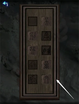 5、房间的留声机下方有三个字符,切换字符声音也不同,根据不同字符的内容点击卧室衣柜内的密码,顺序为纸,嫁,眼睛,丧,圆台,打开暗门,使用煤油灯进入。