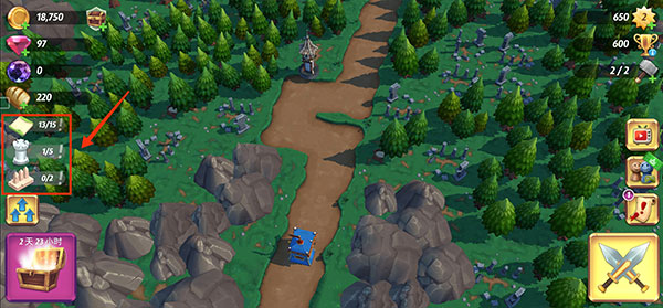6、除了进攻玩法,游戏中还需要做好城防建设,将视角移至城堡外的区域,即可查看可布置的防御设施,如炮塔等。