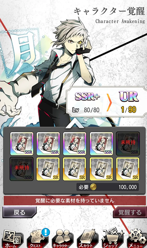 提醒:在突破为UR后角色将变回1级重新升级,所以在没肝够升级素材前,各位新人们还请先多做考虑