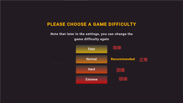 2、进入游戏选择英文字体后来到界面选择游玩难度。