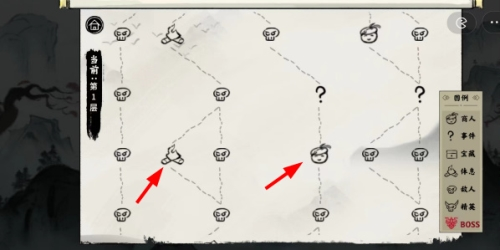 3、游戏:在游戏过程中我们需要先查看关卡地图,找到拥有商人、火把、问号的地方。