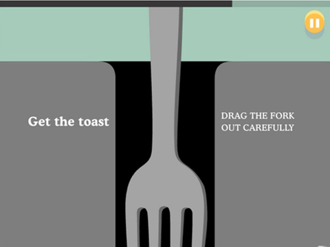 4、进入游戏,系统会出现一个画面,玩家需要根据图上的信息来完成这一关;比如说玩家需要移动叉子,并保证叉子不能动刀两边的金属;