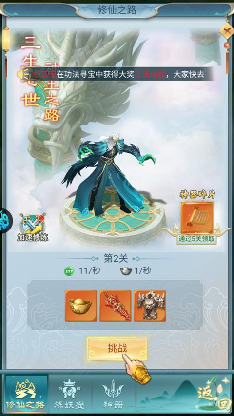 2、巅峰排位 征战三界 专属巅峰排位赛,是强者对决的终极圣地,全程险象环生,极致考验实力、毅力与临场操作。风云再起战火重燃,凭实力横扫对手,主宰三界战局、登顶仙侠之巅。