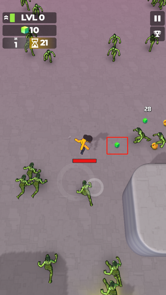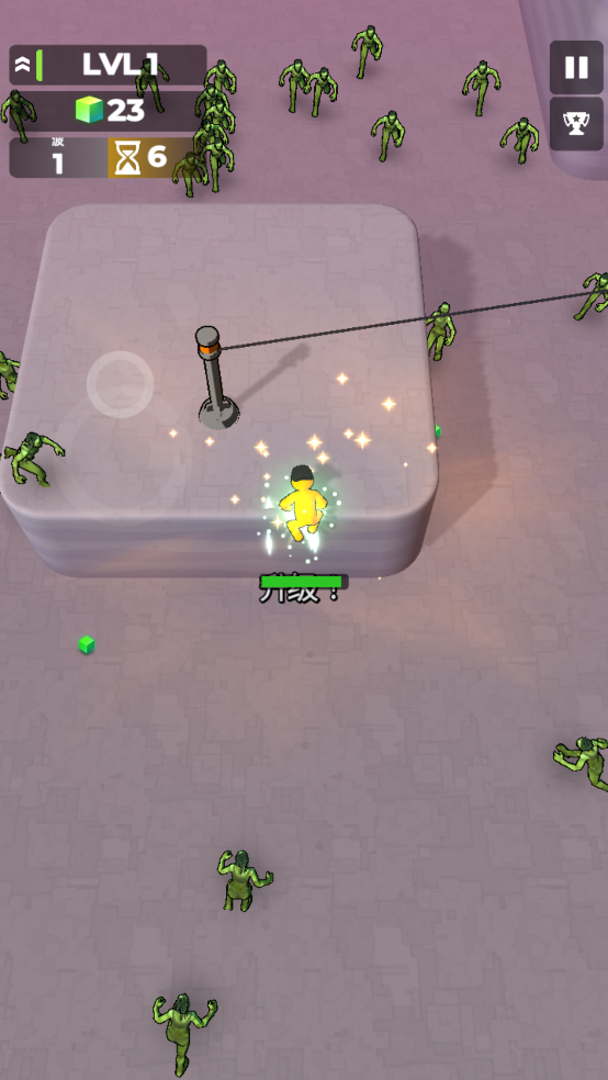 武器会自动开火。拖动即可移动并躲过每一波攻击。